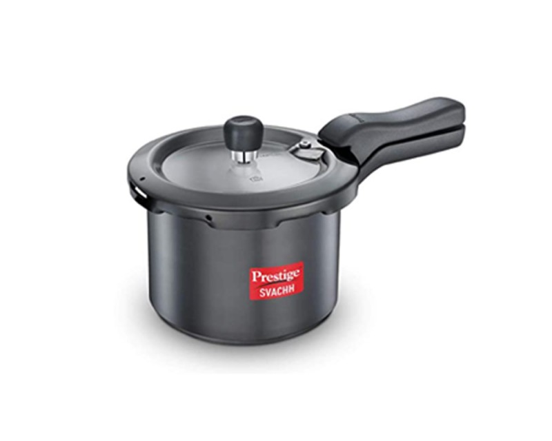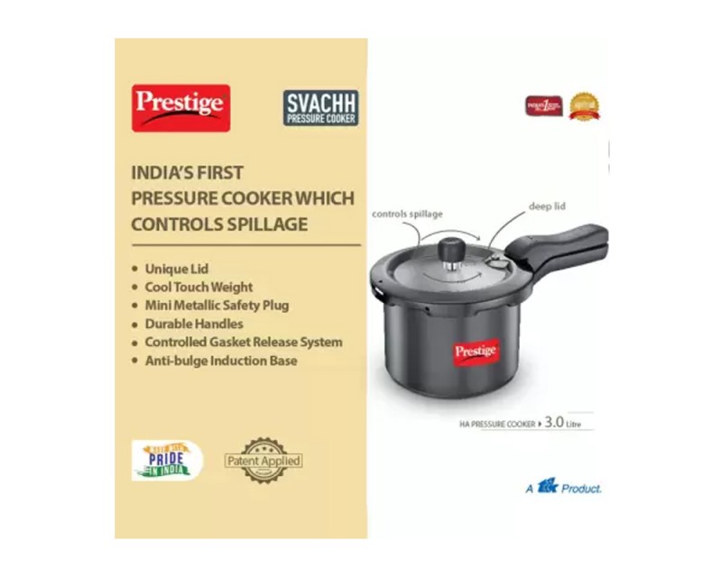 Prestige Svachh No-Mess Cooker Comes With A Unique Lid That Contains Any