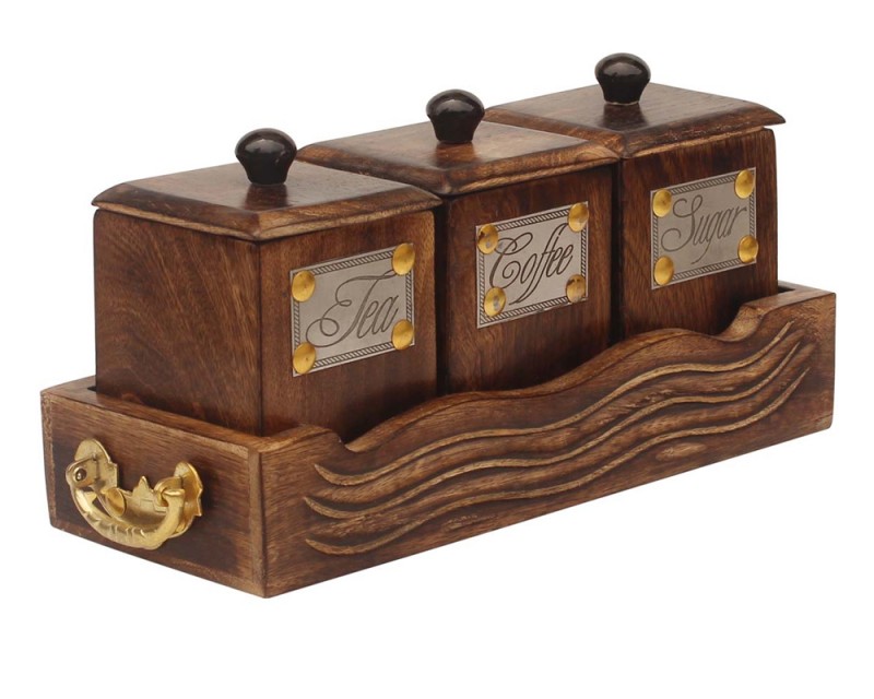 Wooden Tea Coffee & Sugar Container