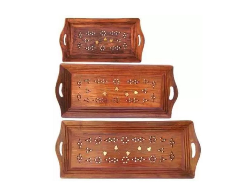 Tray, Set of 3 with Brass Work |