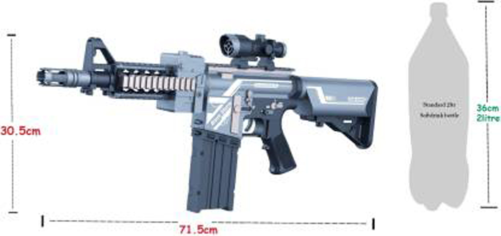 The Miss & Chief Blaze Storm Gun is a battery-operated soft dart gun