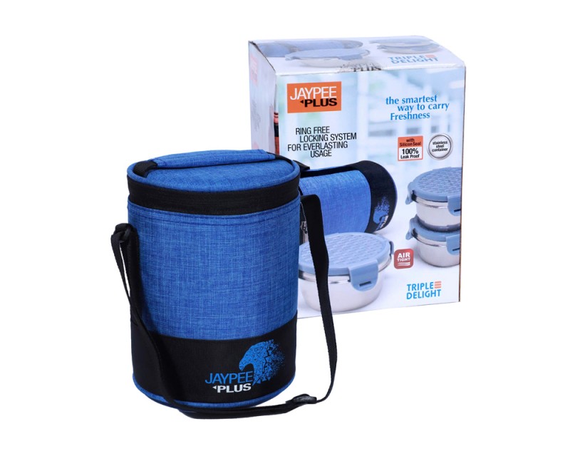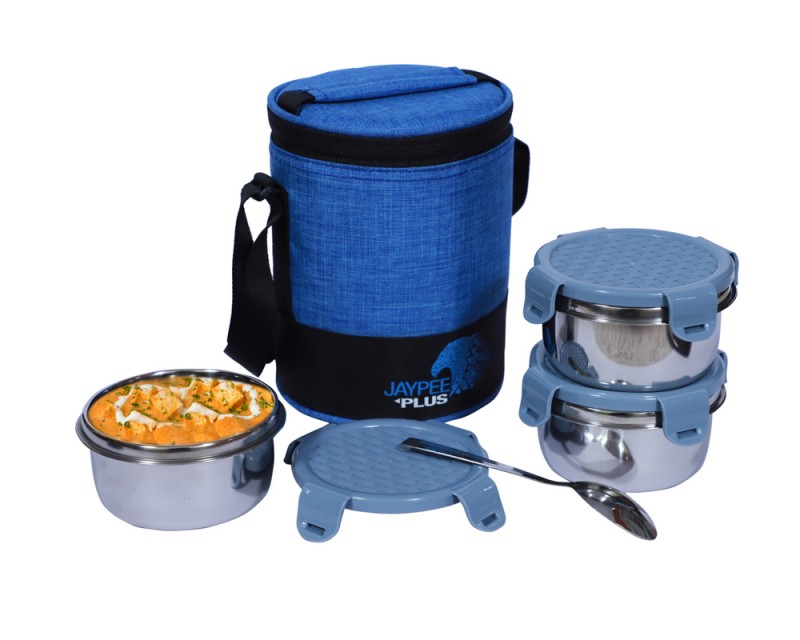 prevents food spillage. This lunch box set consists of 3 tiffin boxes that